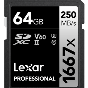 Lexar SDXC UHS-II - Pro Silver Series - V60 1667x 250MB/s - 64GB is backordered and will ship as soon as it is back in stock.