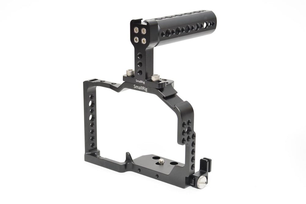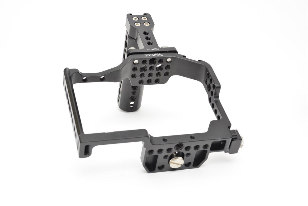 The SmallRig GH4 Lumix Camera Cage is a rugged, custom-fit protective rig designed specifically for the Panasonic Lumix GH4 mirrorless camera, giving videographers and hybrid shooters enhanced stability, modularity, and mounting flexibility. Built from high-grade aluminium alloy, the cage surrounds your GH4 with a solid frame that protects the camera body while providing multiple 1/4″-20 and 3/8″-16 threaded holes, cold shoe mounts, and NATO rails for accessories such as microphones, lights, monitors, and handles. The precision design ensures full access to all GH4 buttons, ports, battery door, and articulating screen with no need to remove the cage, while integrated anti-twist pins and a secure baseplate keep your camera firmly in place. Ideal for rigging in professional workflows, handheld video, and field production, the SmallRig GH4 Cage enhances grip, expands accessory compatibility, and helps you build a modular, ergonomic setup for filmmaking, vlogging, and multimedia content creation.