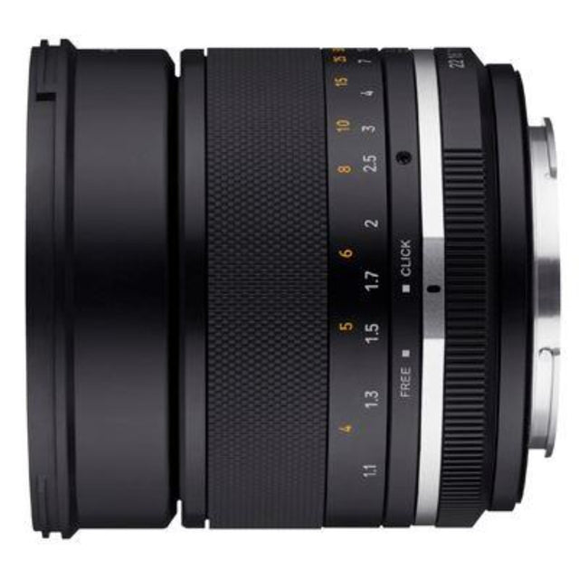 The MF 85mm F1.4 Mk2 features a de-clicked aperture option which allows infinitely fine adjustment between F-stops. By rotating the silver ring from 'Click' to 'Free', you can adjust the aperture smoothly and precisely, to ensure exactly the right amount of light is captured.