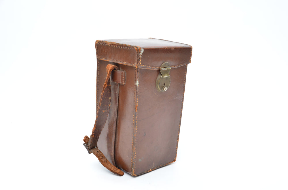 A very unique an innovative TLR, this Welta Superfekta has a Carl Zeiss 10.5cm f/3.5 tessar lens, with a functioning shutter, focusing mechanism, and folding mechanism. It shows some heavy signs of use, however this is to be expected for an item this old.