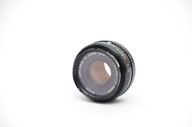 The Ricoh Rikenon 50mm f/2 Pentax K Lens is a classic standard-prime lens designed for Pentax K-mount film and digital SLR cameras, delivering reliable optical performance in a compact and lightweight form. With its 50mm focal length and bright f/2 maximum aperture, this lens offers a natural field of view that’s ideal for portraits, street photography, everyday shooting, and low-light situations, providing pleasing subject separation and smooth background blur. The optical design produces sharp, contrasty images with good colour fidelity, while the solid manual-focus mechanics and robust build reflect Ricoh’s reputation for dependable craftsmanship. Easy to handle and versatile in a wide range of shooting scenarios, the Ricoh Rikenon 50mm f/2 Pentax K Lens is a great choice for photographers seeking classic lens character and straightforward performance on Pentax systems.