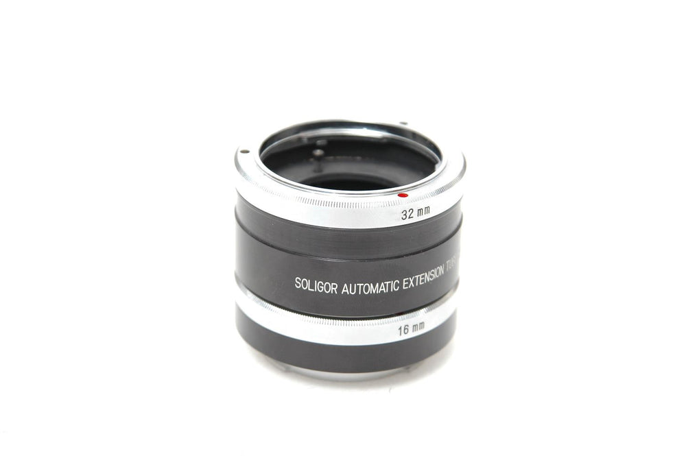 The Soligor Extension Tube Set for Rolleiflex SLR is a practical macro photography accessory designed to reduce the minimum focusing distance of compatible Rolleiflex SLR lenses. By placing extension tubes between the camera body and lens, photographers can achieve greater magnification and capture detailed close-up images of small subjects such as flowers, insects, and textures. Typically supplied as a multi-piece set—often including tubes of different lengths that can be used individually or combined—this system allows flexible control over magnification levels. Built from durable metal for a secure lens mount connection, the Soligor extension tube set maintains optical quality while expanding the macro capabilities of Rolleiflex SLR cameras, making it a valuable accessory for close-up and creative photography.