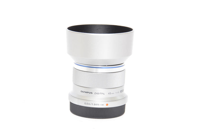 The Olympus M.Zuiko 45mm f/1.8 is a compact prime lens designed for Micro Four Thirds cameras, offering a 90mm equivalent focal length. Its fast f/1.8 aperture delivers excellent low-light performance and beautiful background blur, making it ideal for portraits, street photography, and close-ups. The lens produces sharp, high-contrast images with great clarity, all in a lightweight and portable design.