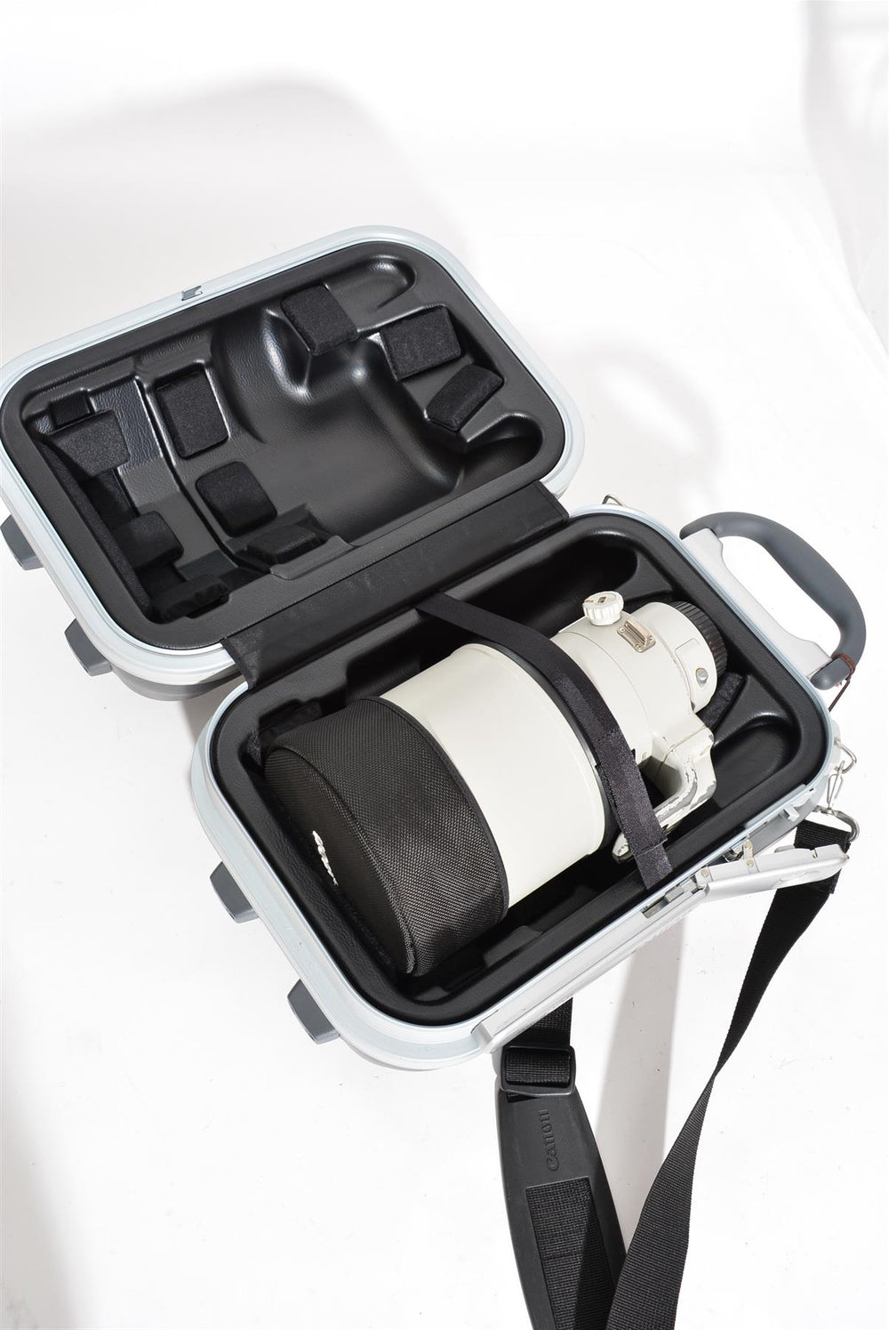 This product comes with: Hard Case, Lens hood, Rear canon cap, Cloth lens cap.
