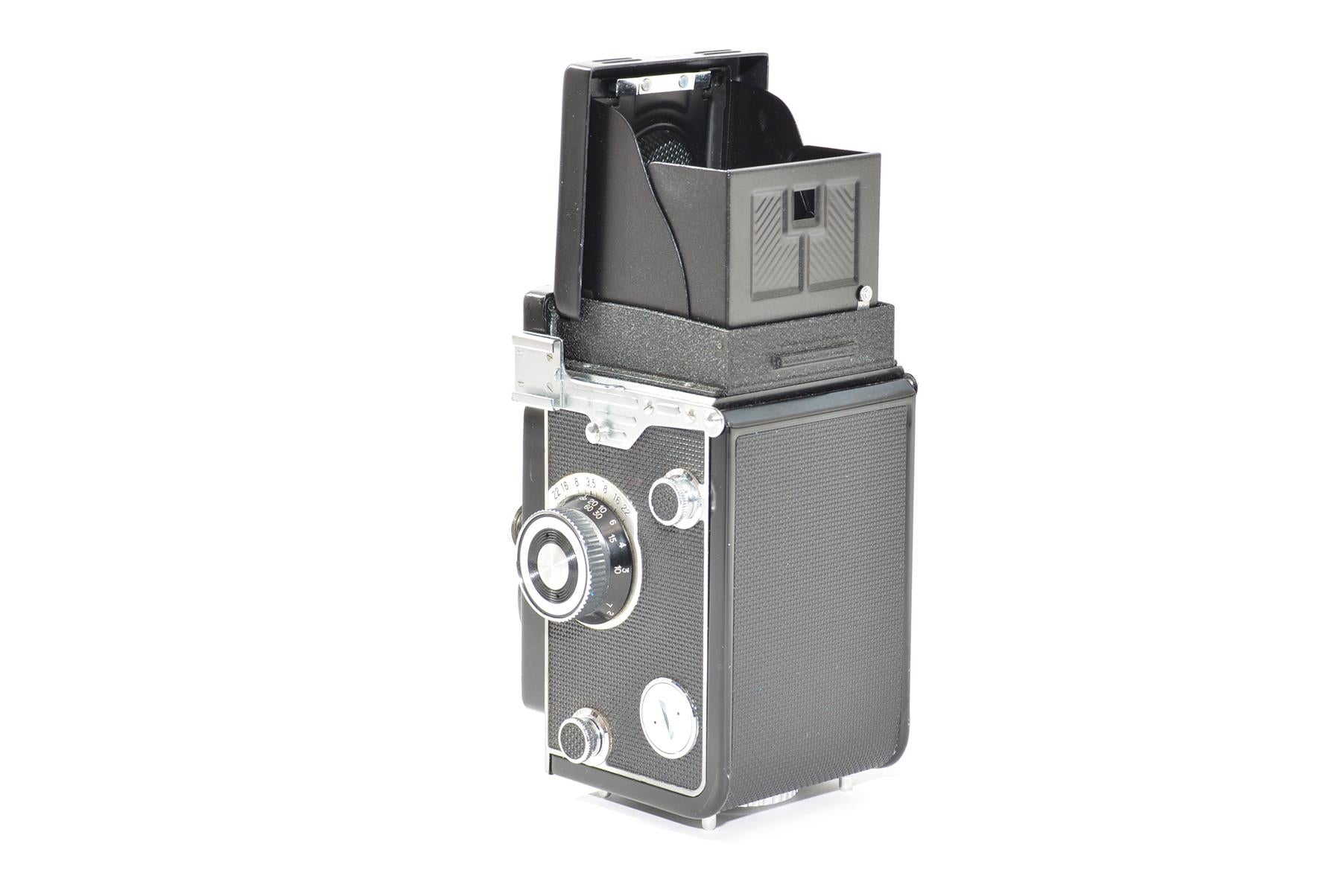 The Yashica Mat-124 is a classic twin-lens reflex (TLR) film camera designed for 120 and 220 medium format film. It features a Yashinon 80mm f/3.5 taking lens, delivering sharp and beautifully rendered images with a vintage aesthetic. The built-in light meter assists in achieving accurate exposures, while the waist-level viewfinder provides a unique and immersive shooting experience. With its robust metal construction and smooth focusing mechanism, the Mat-124 is a highly regarded choice for film enthusiasts and collectors looking to explore medium format photography.